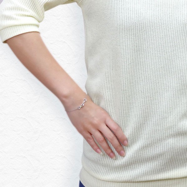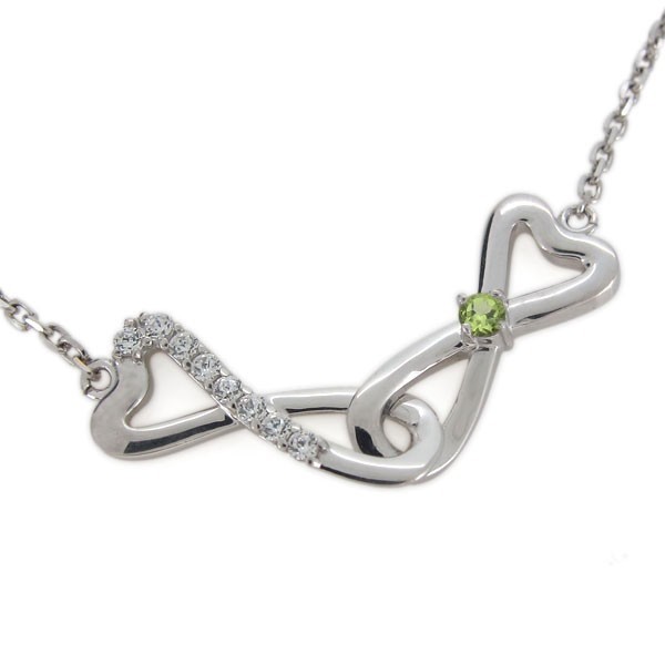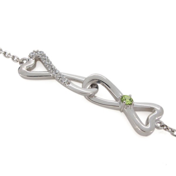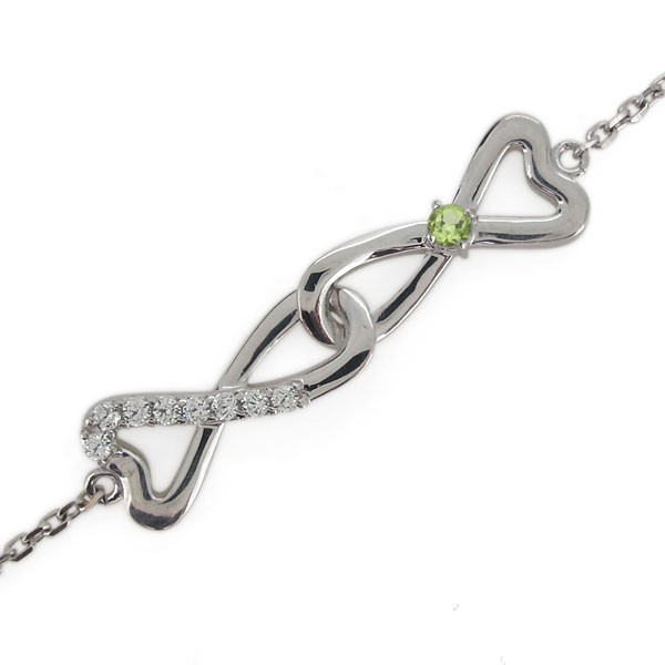 8月誕生石ペリドットを使用したプラチナ製の、インフィニティ(無限)&ハートモチーフのアンクレットです。