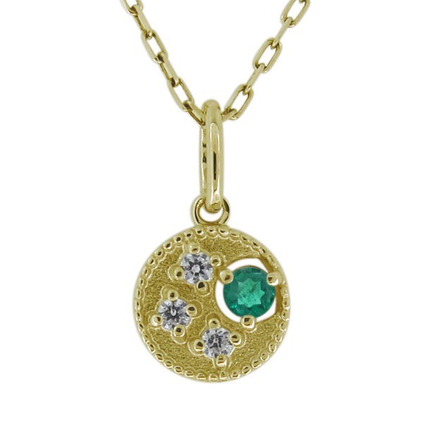 5月誕生石エメラルドを使用した10金製の、三日月(ムーン)モチーフレディースネックレス(ペンダント)です。