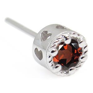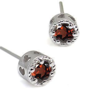 1月誕生石ガーネットを使用したハート&縄デザインの18金製シンプルピアスです。
