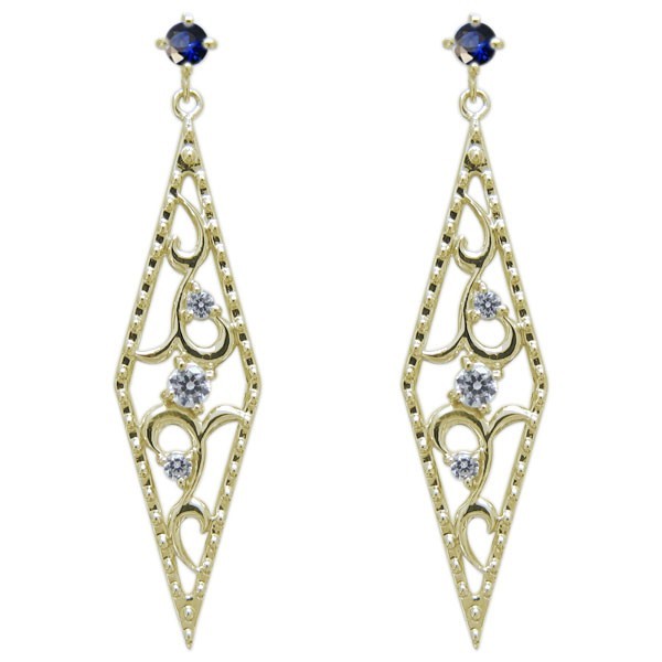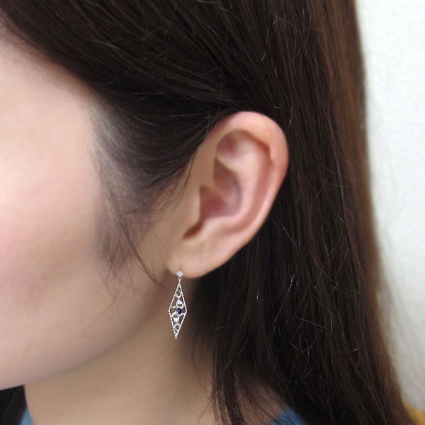 スクエアピアス サファイア ピアス ミル打ち ピアス K18