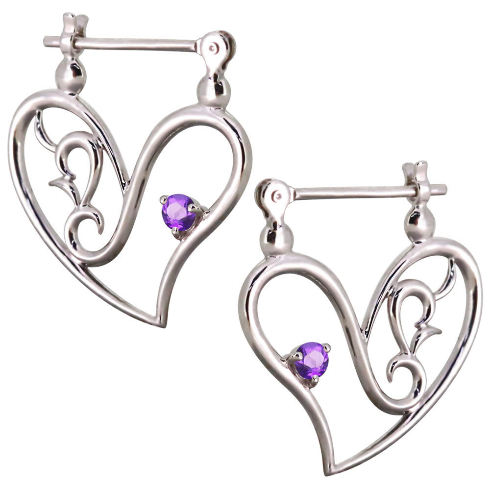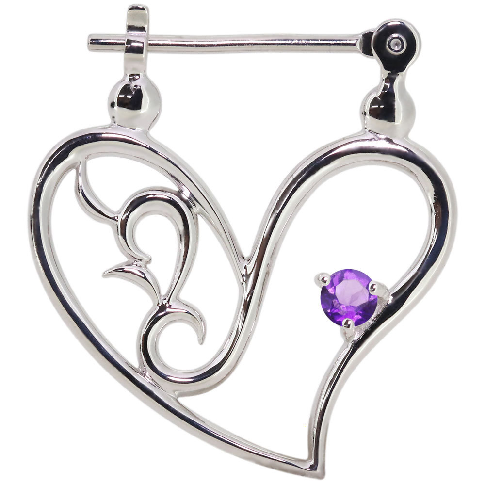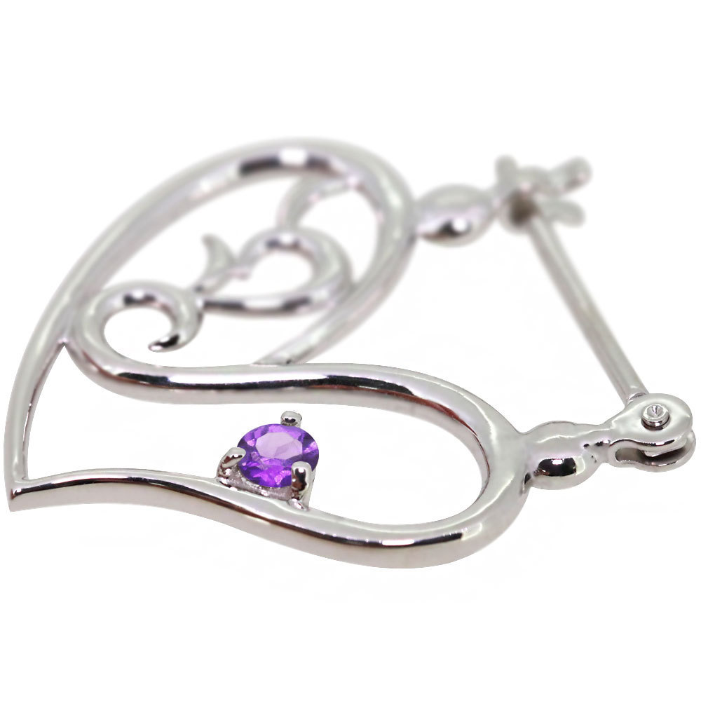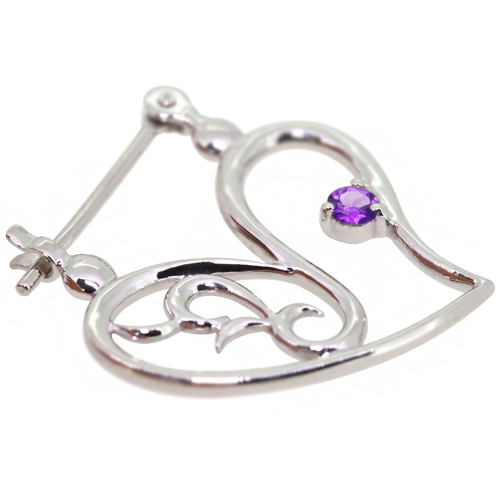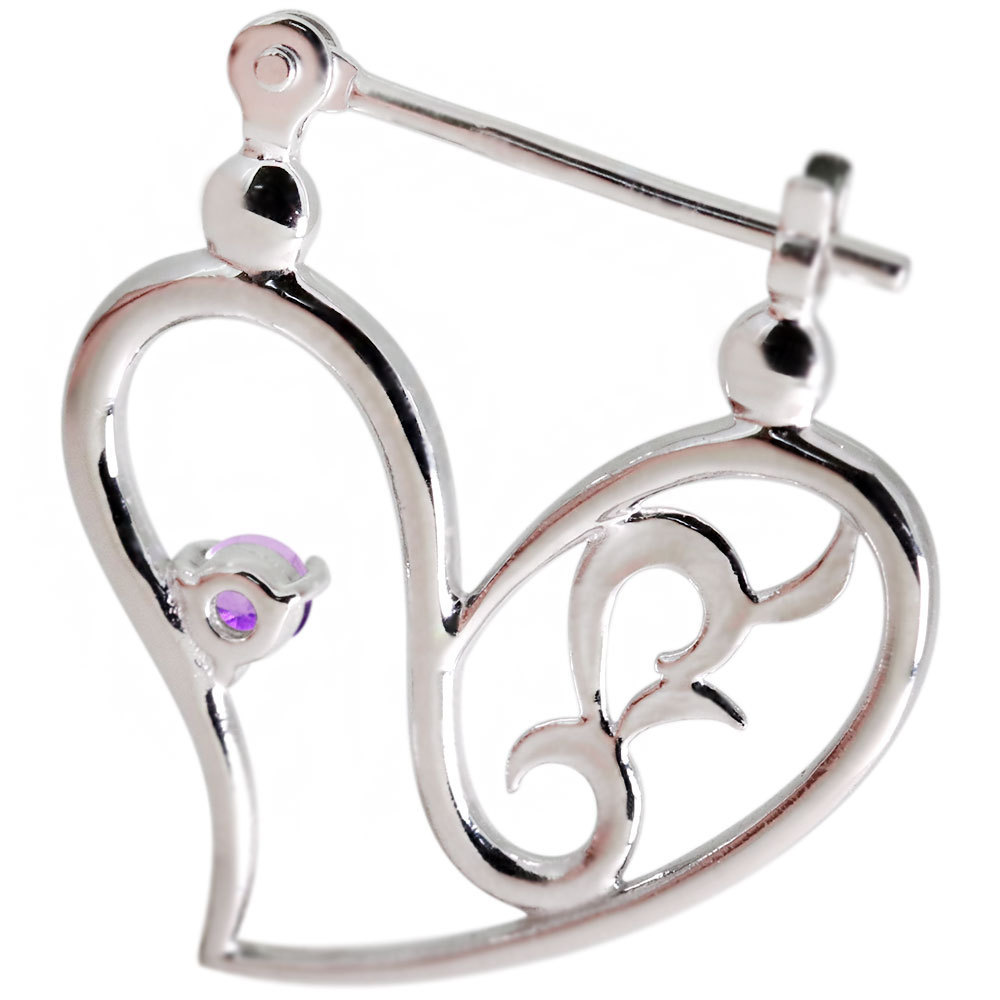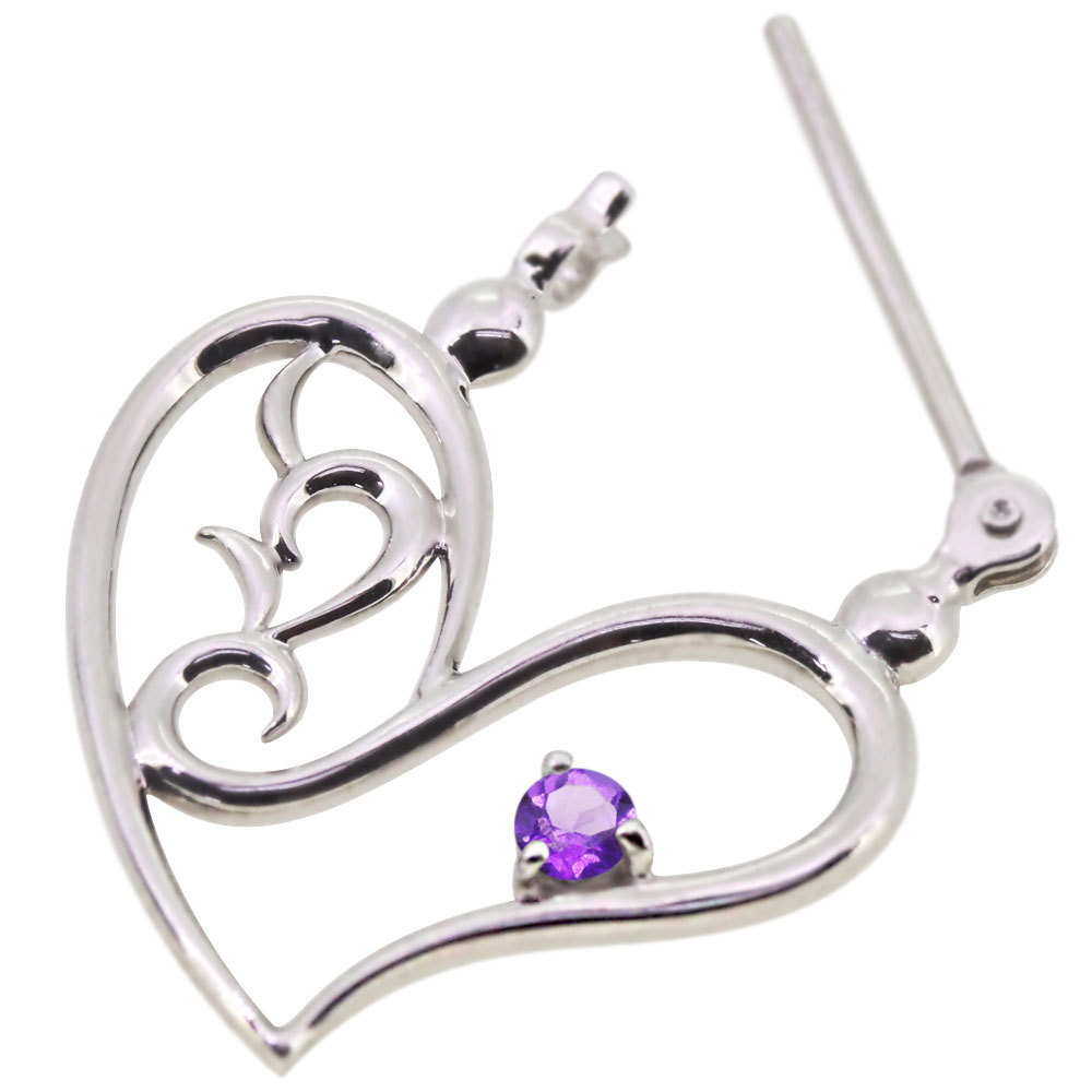 2月誕生石アメジストを使用したプラチナ製の、ハートモチーフのクロッシングピアスです。