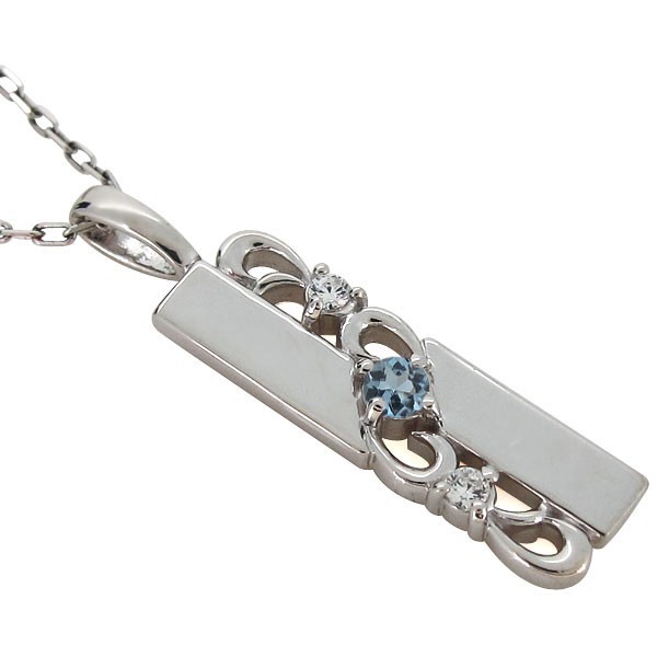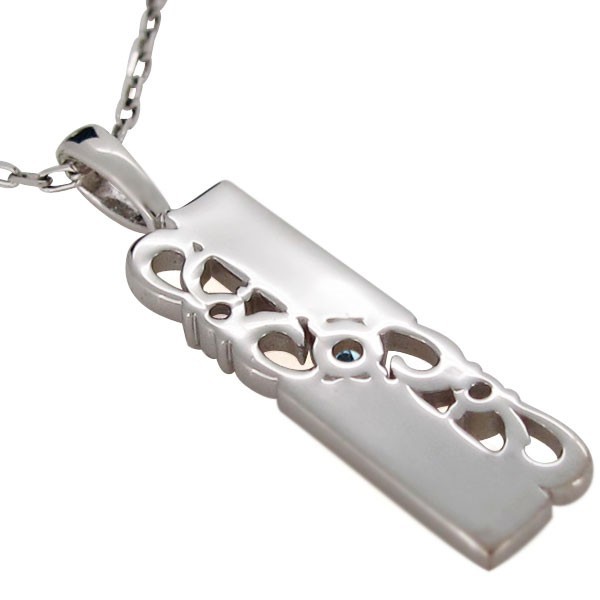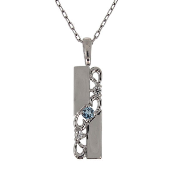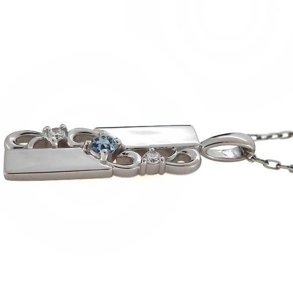 3月誕生石アクアマリンサンタマリアを使用したシルバー製の、唐草プレートデザインレディースネックレス(ペンダント)です。