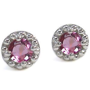 ピンクトルマリン ピアス K18 ピアス ミル打ち