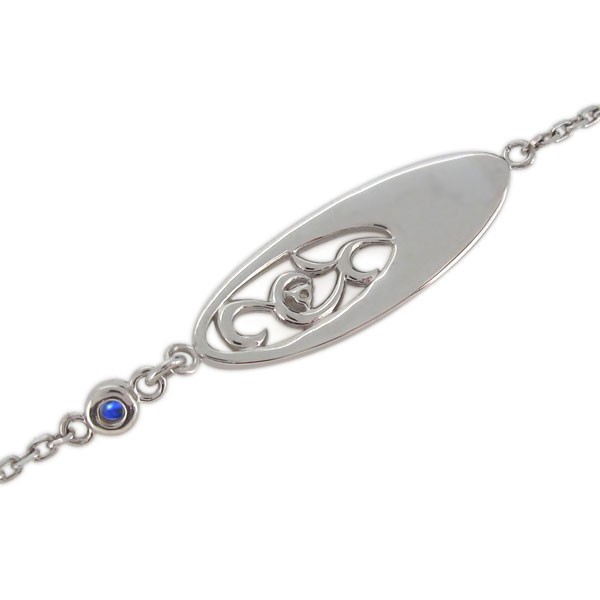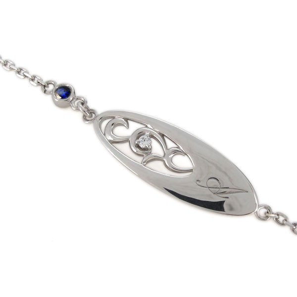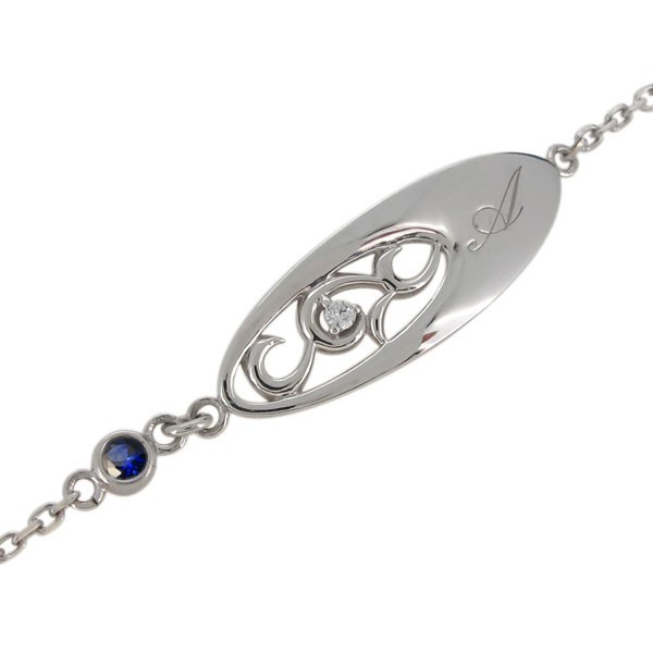 9月誕生石サファイアを使用したプラチナ製の、唐草モチーフのアンクレットです。