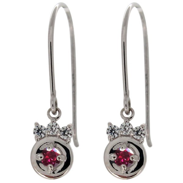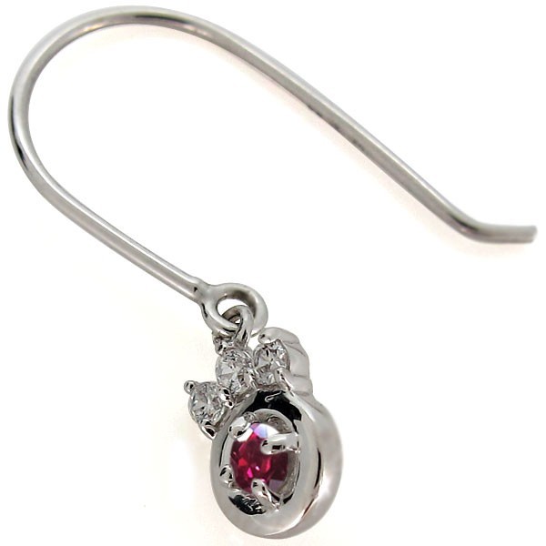 ルビー ピアス プラチナ アメリカンフック シンプル 小ぶり ゆれる