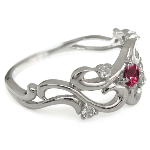 ■石名:主石 ルビー(約 3.0mm/天然石使用)脇石 ダイヤモンド(4石合計で約 0.08ct/天然石使用)