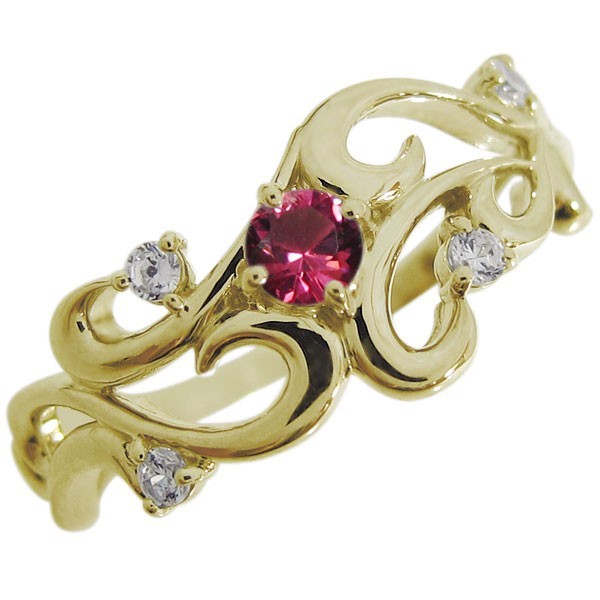 7月誕生石ルビーを使用した10金製の唐草(アラベスク)デザインリング(指輪)です。
