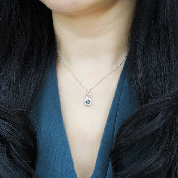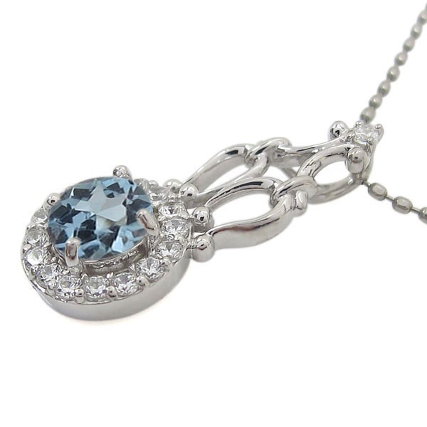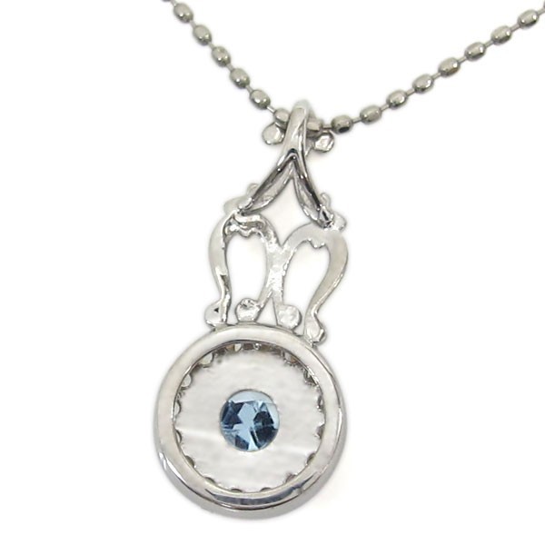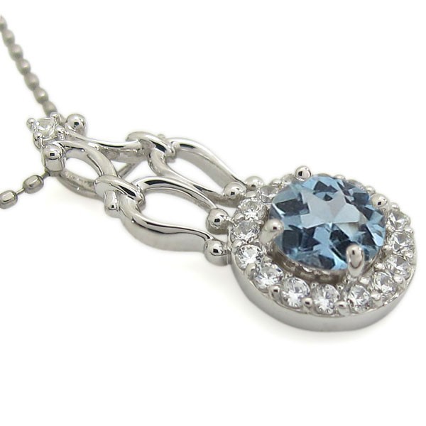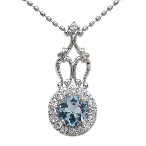 3月誕生石アクアマリンサンタマリアを一粒使用した、プラチナ製の取り巻きデザインのアンティーク調ネックレスです。