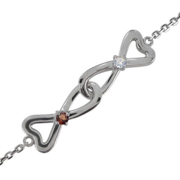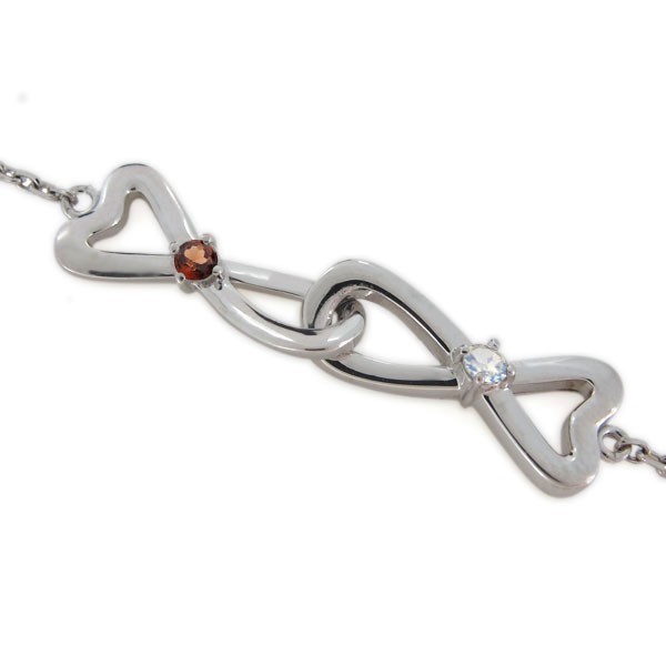 1月誕生石ガーネットを使用したプラチナ製の、インフィニティ(無限)&ハートモチーフのアンクレットです。