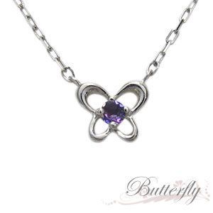 2月誕生石アメジストを一粒使用した、10金製の蝶(バタフライ)モチーフプチネックレスペンダントです。