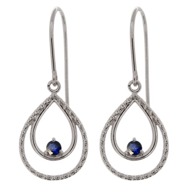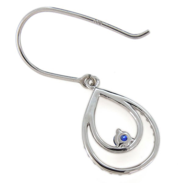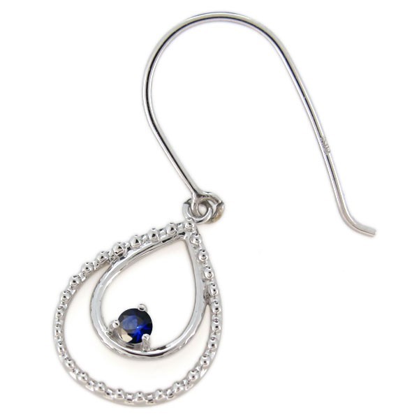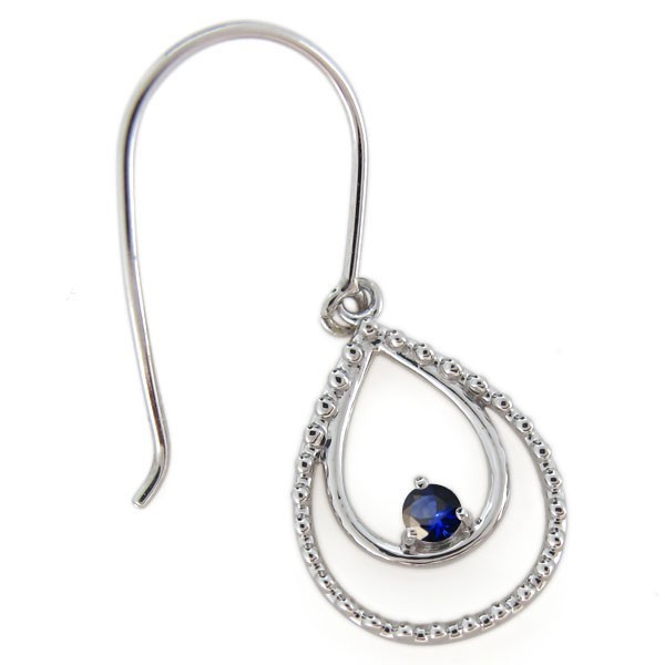 ピアス サファイア ティアドロップ 雫 レディース ミル打ち フック プラチナ クリスマス ポイント消化