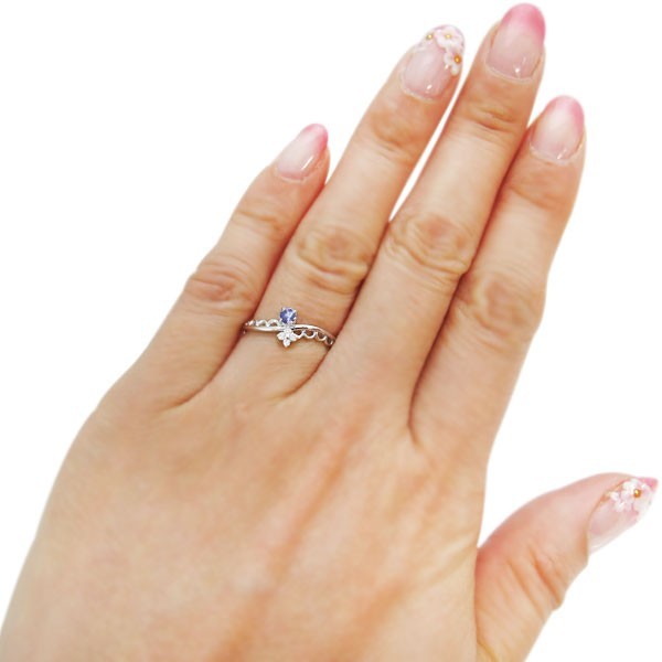 ■石名:主石 タンザナイト(約3.0mm 天然石使用)脇石 ダイヤモンド(4石合計で約0.04ct 天然石使用)