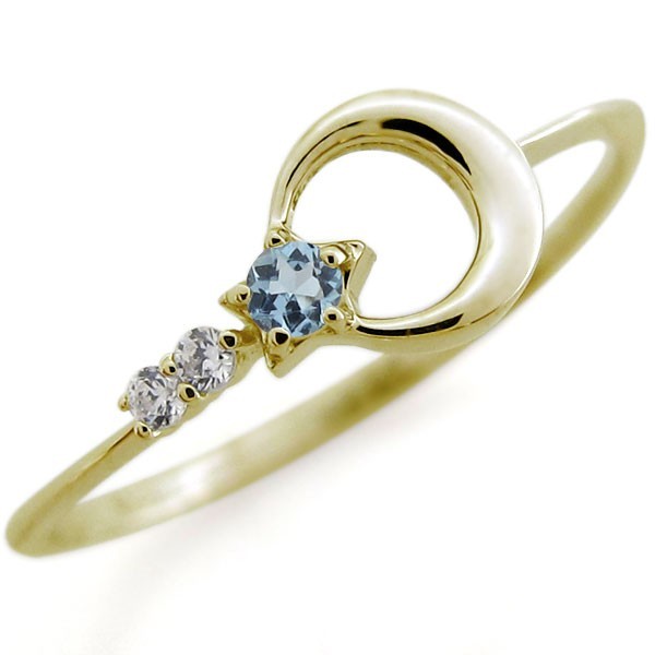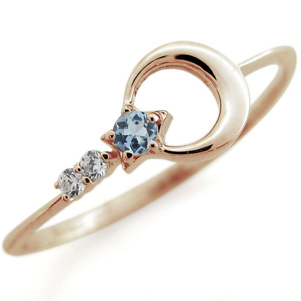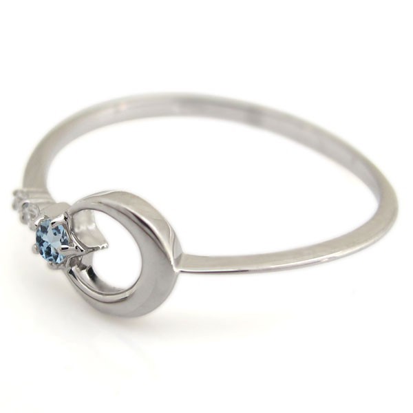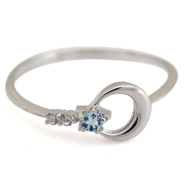 3月誕生石アクアマリンサンタマリアを一粒使用した、シルバー製の三日月(ムーン)星(スター)モチーフリング(指輪)です。