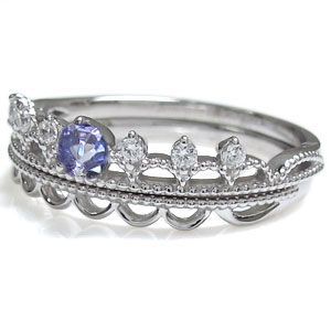 12月誕生石タンザナイトを使用した、ティアラをモチーフにした2本セットの18金製リング(指輪)です。