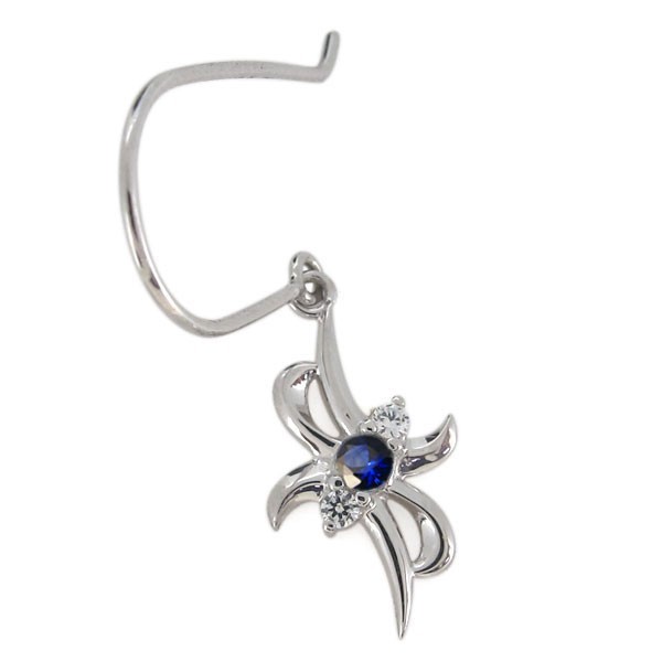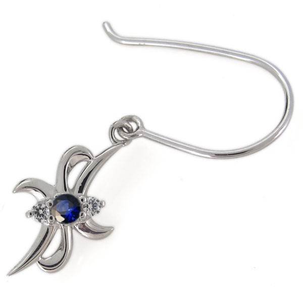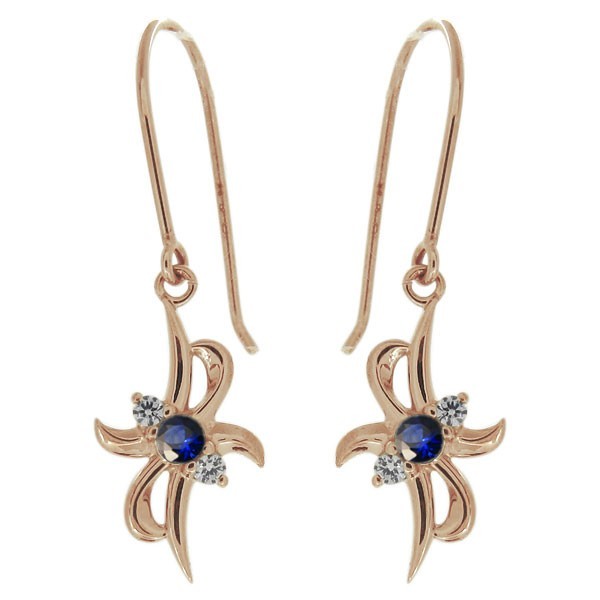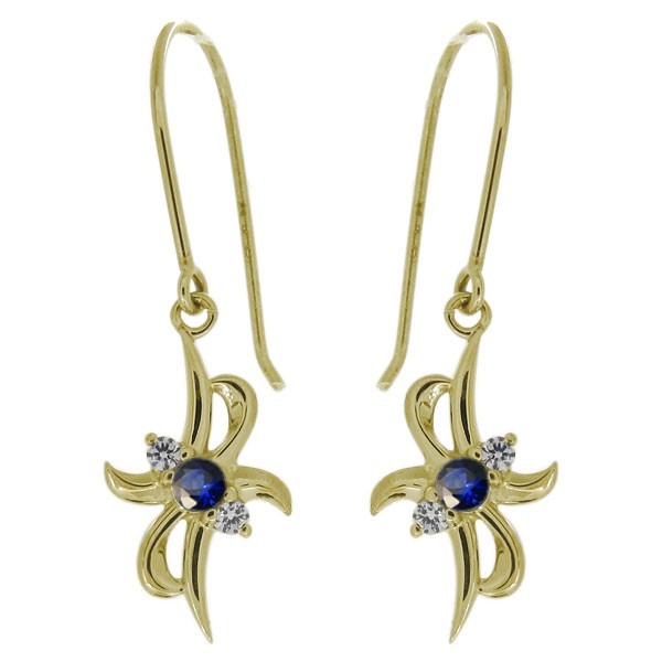 レディース ピアス クロス サファイア 9月誕生石 揺れるピアス 10金