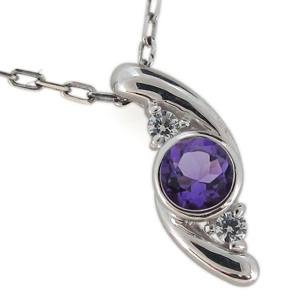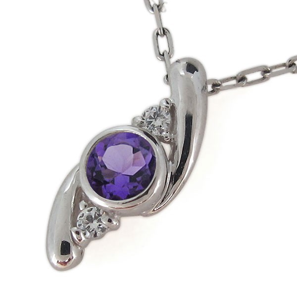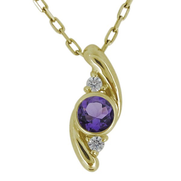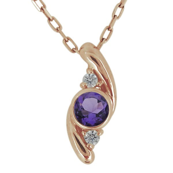 2月誕生石アメジストを一粒使用した18金製の、シンプルデザインレディースネックレス(ペンダント)です。