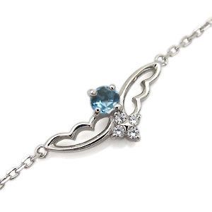 11月誕生石ブルートパーズを一粒使用した、フェザーデザインの10金製アンクレット(ブレスレット)です。