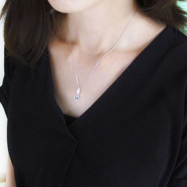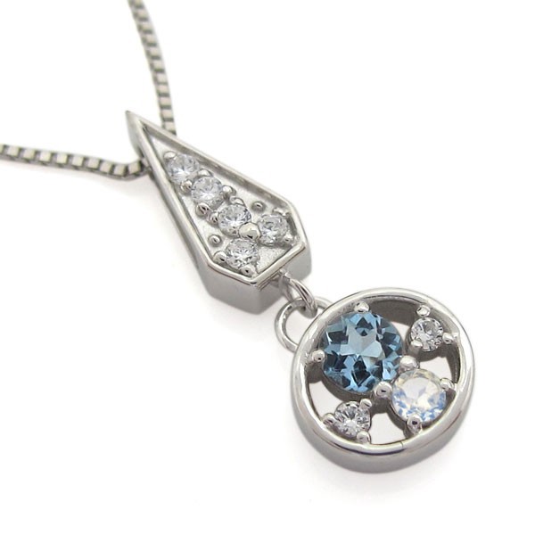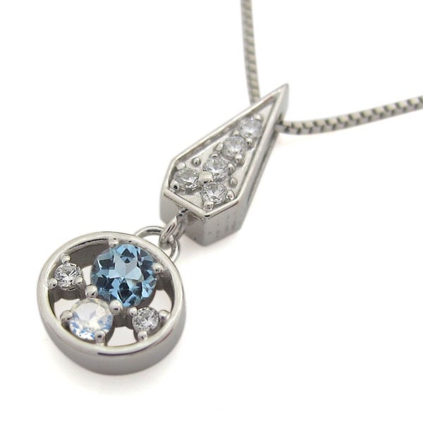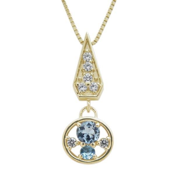 3月誕生石アクアマリンサンタマリアを一粒使用した、10金製のサークル型のネックレス・ペンダントです。