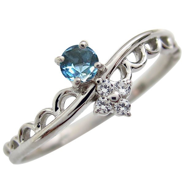 ■石名:主石 ブルートパーズ(約3.0mm 天然石使用)脇石 ダイヤモンド(4石合計で約0.04ct 天然石使用)