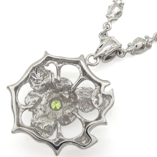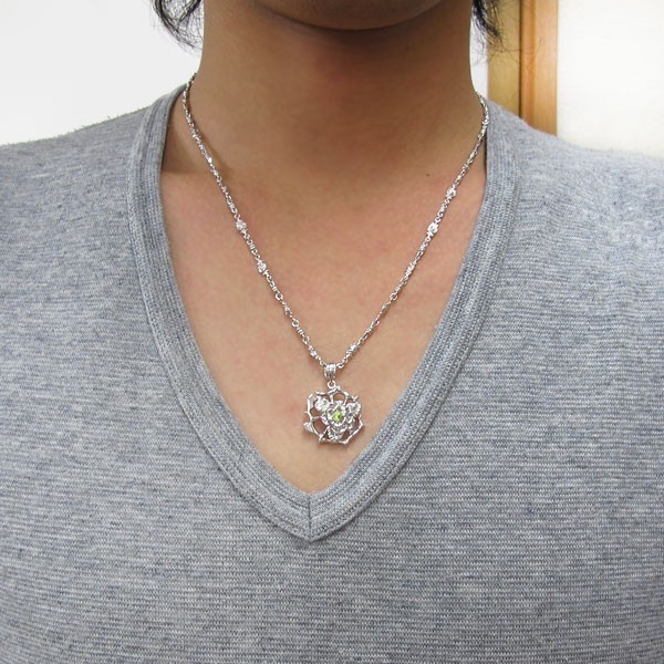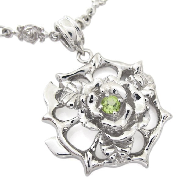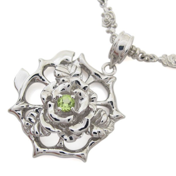 8月誕生石ペリドットを使用した、シルバー製の薔薇(ローズ)モチーフメンズ・ネックレスペンダントです。