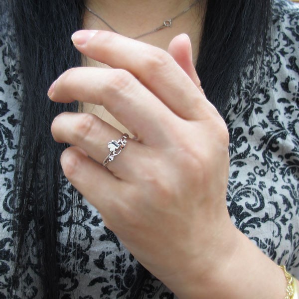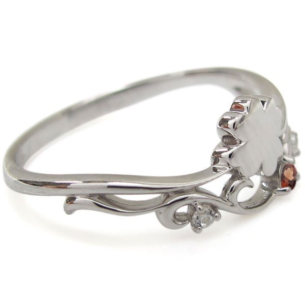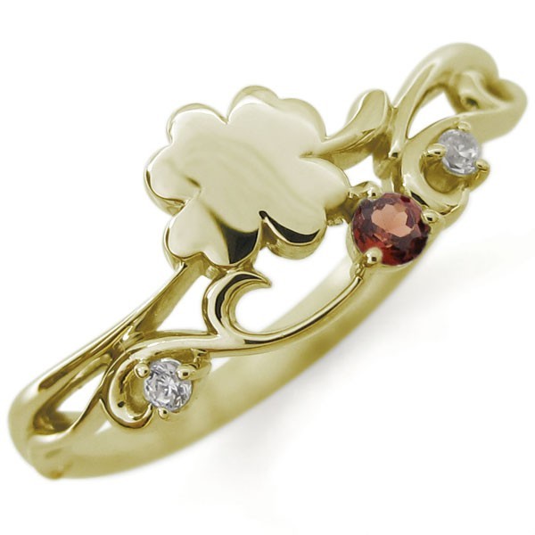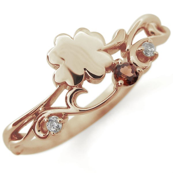 1月誕生石ガーネットを一粒使用した、10金製の唐草&クローバーモチーフリング(指輪)です。
