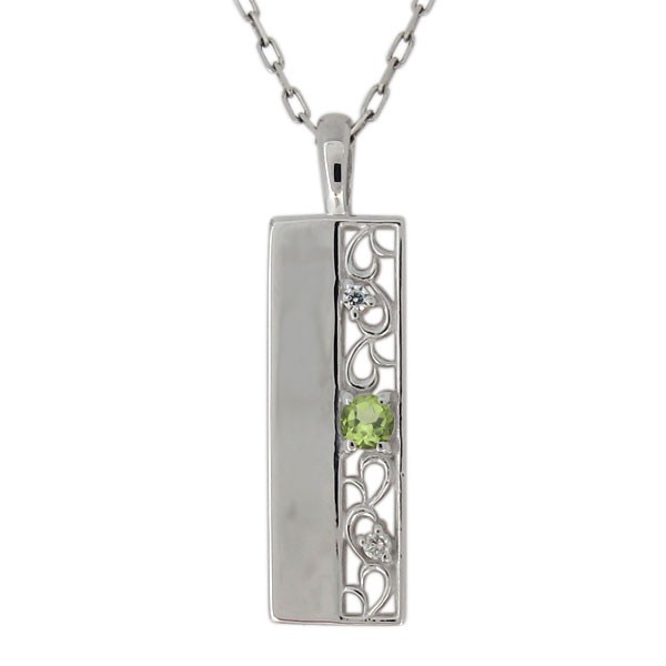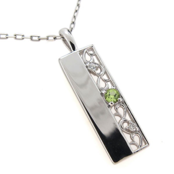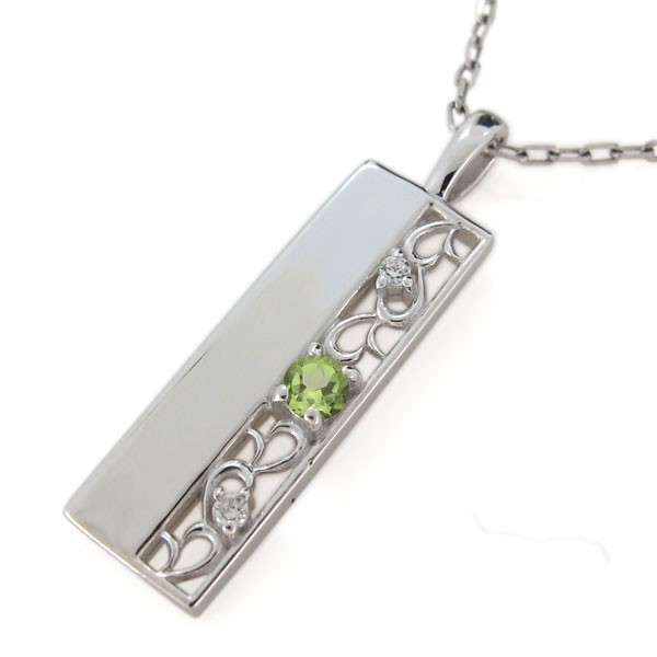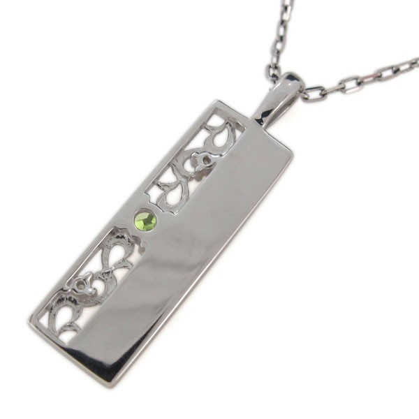 8月誕生石ペリドットを使用したシルバー製の、唐草プレートデザインメンズネックレス(ペンダント)です。