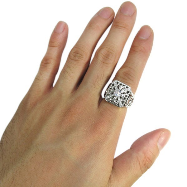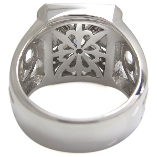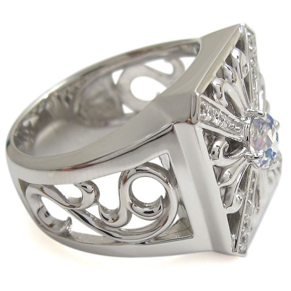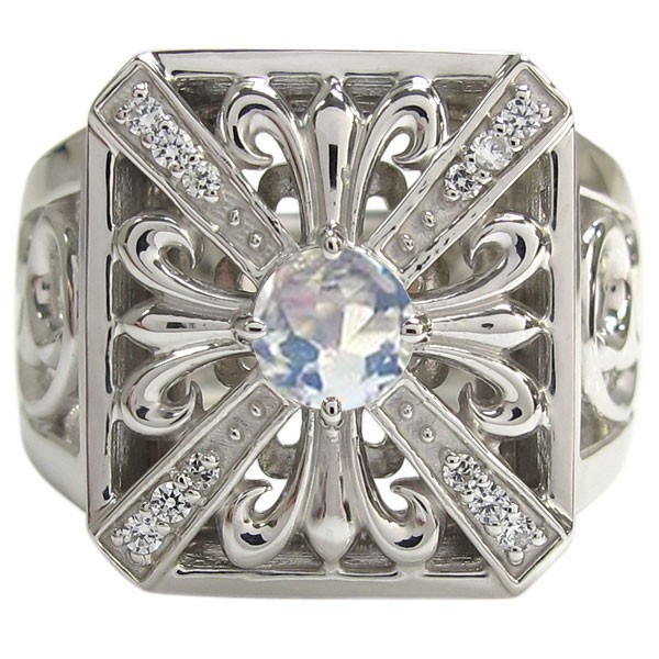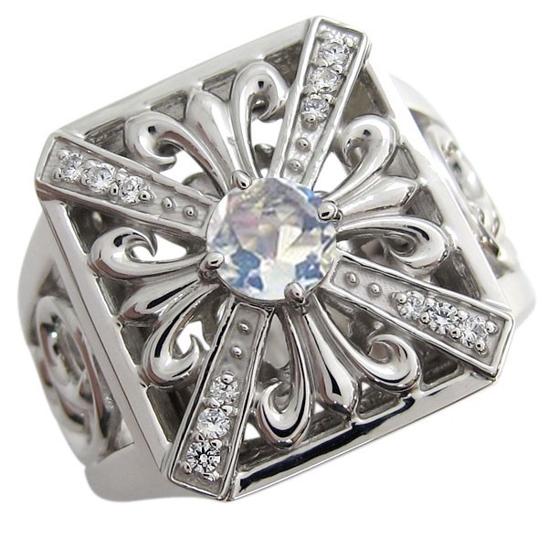 6月誕生石ロイヤルブルームーンストーンを使用した、プラチナ製クロス&百合の紋章モチーフメンズリング(指輪)です。