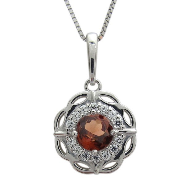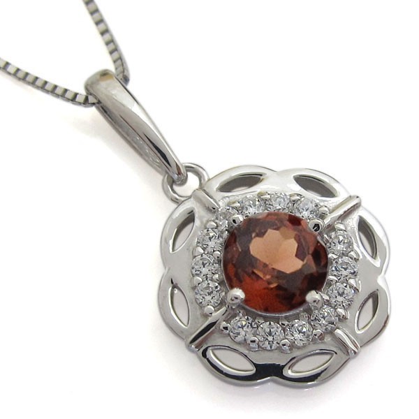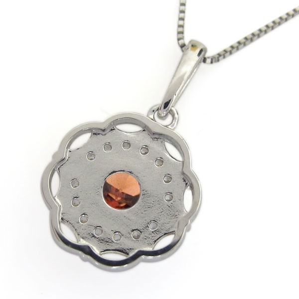 1月誕生石ガーネットを使用したプラチナ製の、フラワー(花)モチーフネックレス・ペンダントです。