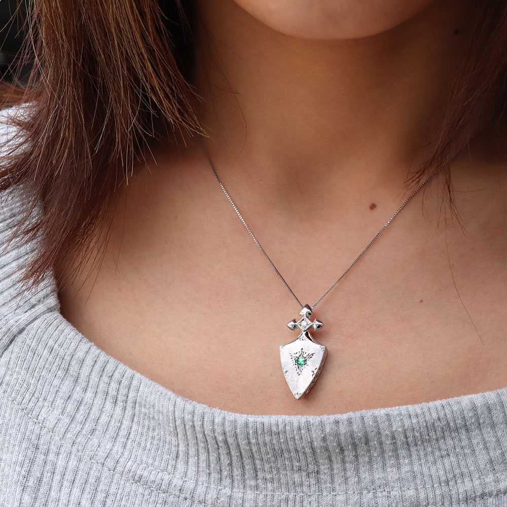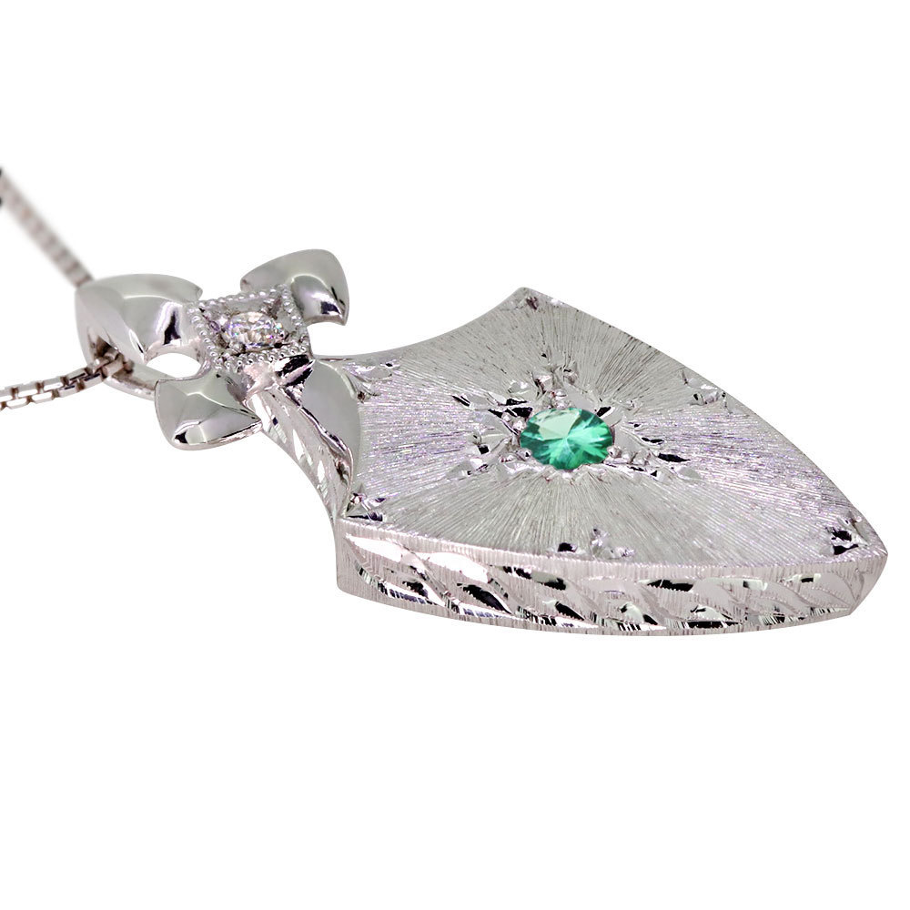 5月誕生石エメラルドを使用したプラチナ製の、レディースネックレス(ペンダント)です。