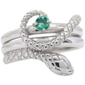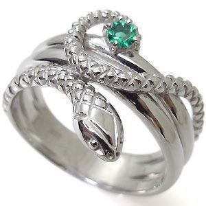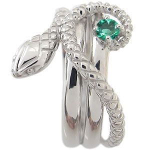 スネーク 18金 エメラルド ヘビ リング