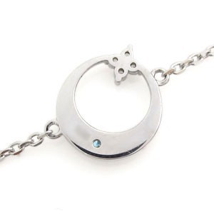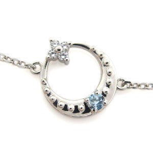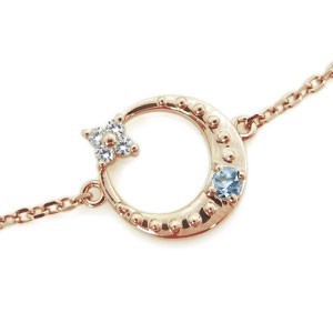 3月誕生石アクアマリンサンタマリアを使用した18金製の三日月(ムーン)星(スター)モチーフアンクレットです。