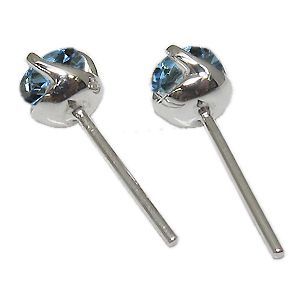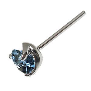 3月誕生石アクアマリンサンタマリアを一粒使用したプラチナ製のシンプルデザインピアスです。