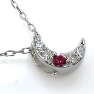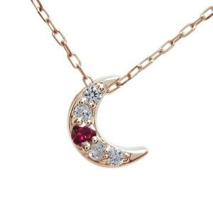 7月誕生石ルビーを使用した、10金製の三日月(ムーン)をモチーフネックレスペンダントです。