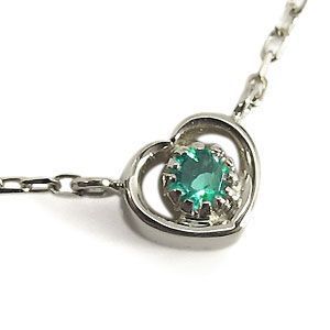 5月誕生石エメラルドを一粒使用したハートモチーフプラチナ製ネックレスペンダントです。