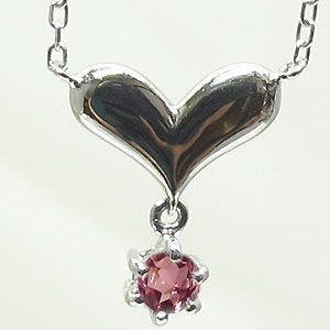 10月誕生石ピンクトルマリンを一粒使用したハートデザインの10金製ネックレス(ペンダント)です。