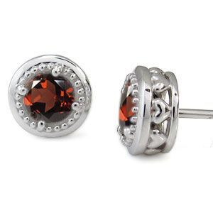 ピアス ハート ピアス ミル打ち 粒 ガーネット ピアス