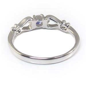 2つのハートに支えられたダイヤモンドが美しく煌めき、可憐で可愛らしい雰囲気のリングです。