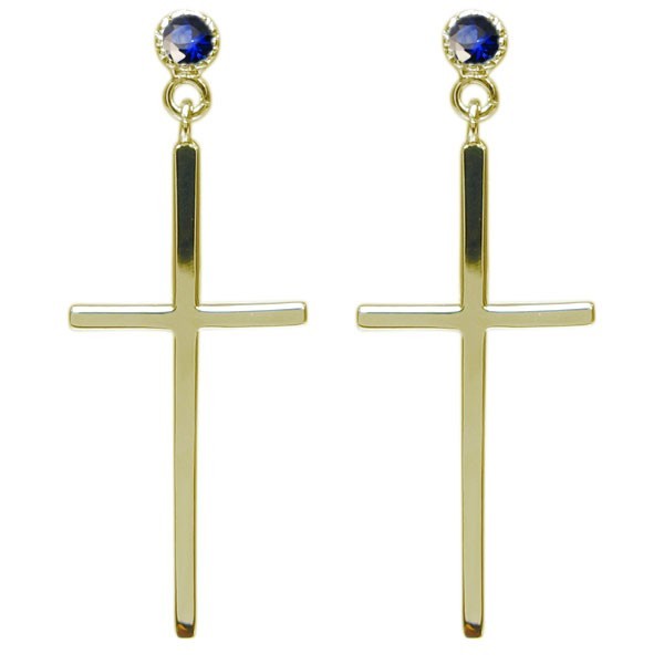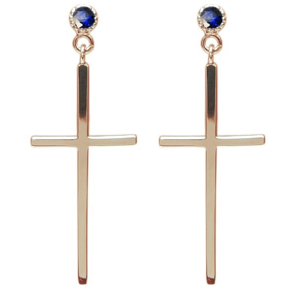 サファイアピアス クロスピアス 十字架 ピアス レディース K18