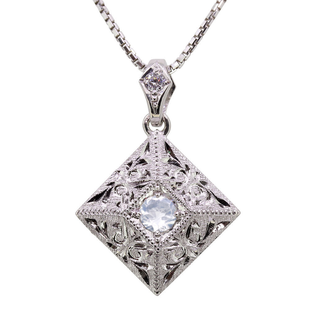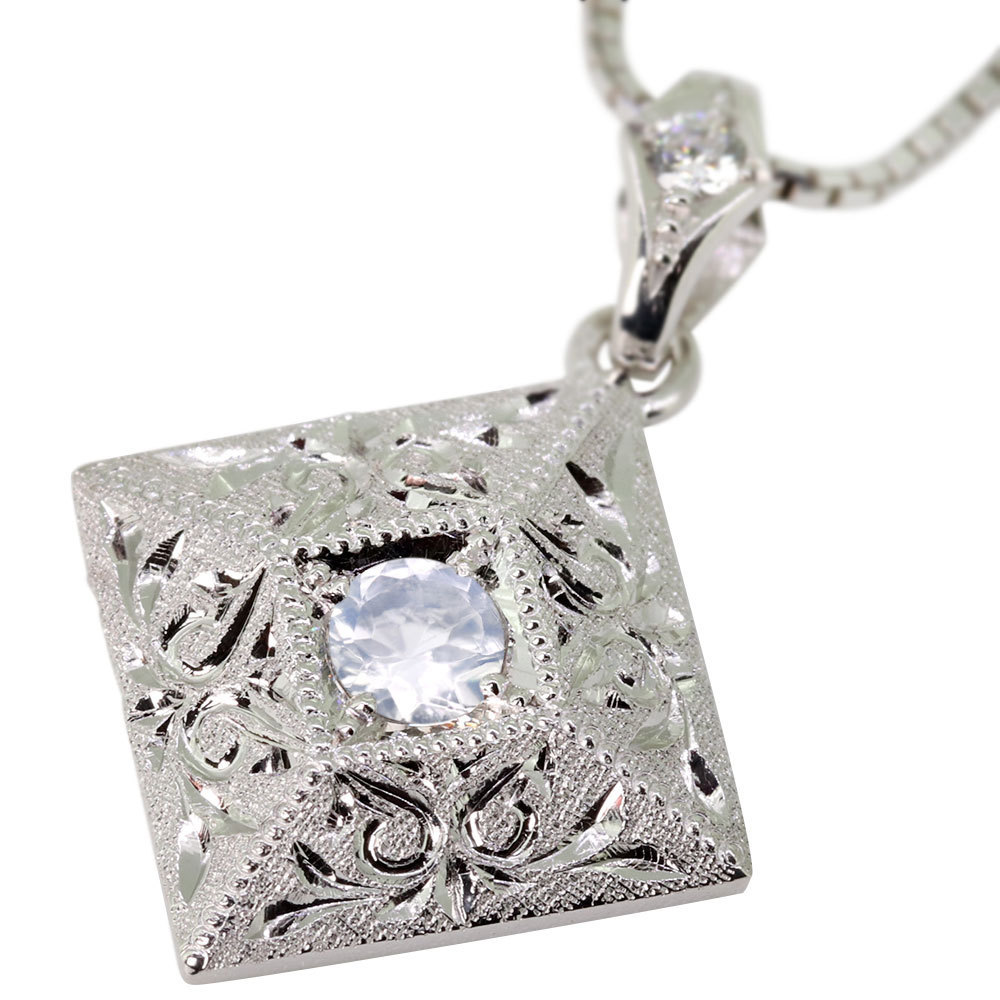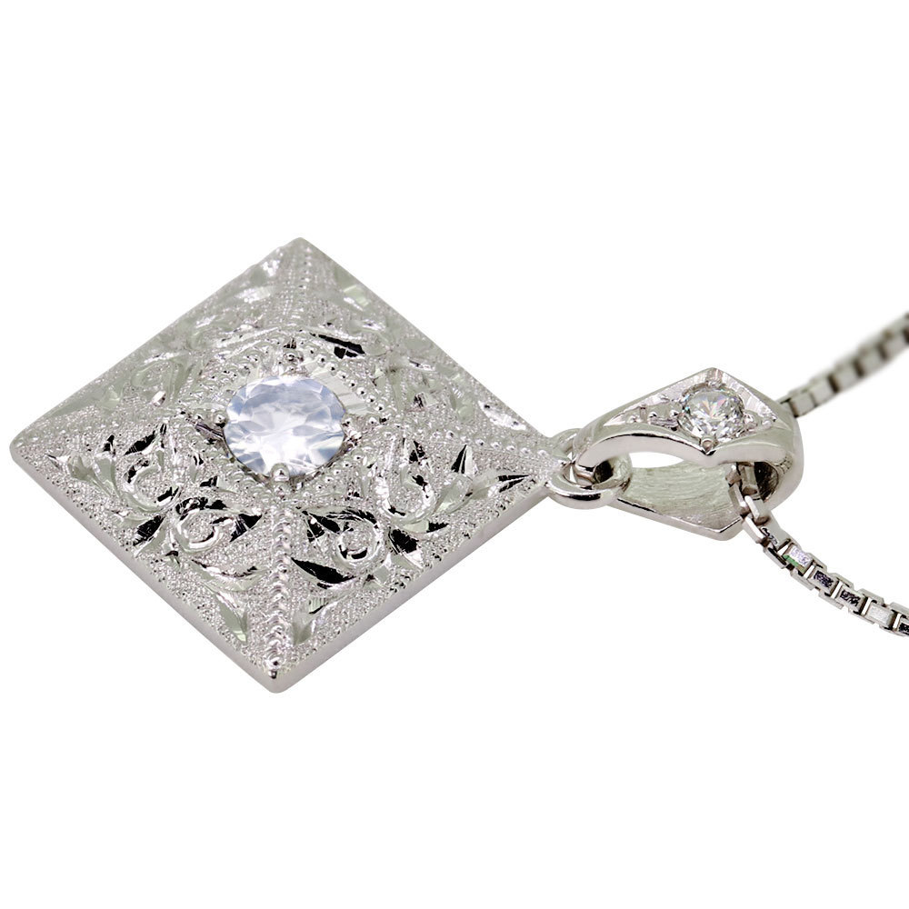 6月誕生石ロイヤルブルームーンストーンを使用したプラチナ製の、レディースネックレス(ペンダント)です。