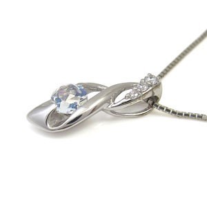 6月誕生石ロイヤルブルームーンストーンを一粒使用した、18金製のネックレスペンダントです。