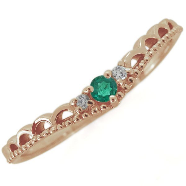 ■石名:主石 エメラルド(約 2.0mm/天然石使用)脇石 ダイヤモンド(2石合計で約 0.01ct/天然石使用)