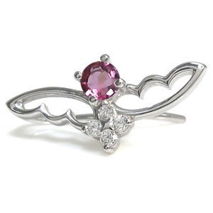 プラチナ ピンクトルマリン イヤーカフ ピアス フェザー ピアス クリスマス ポイント消化