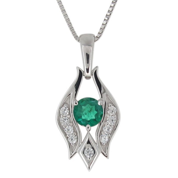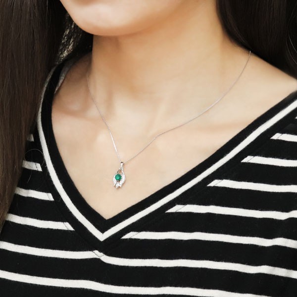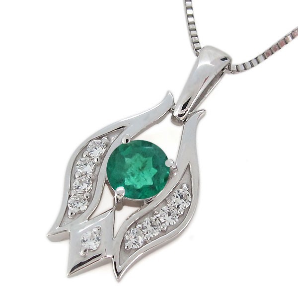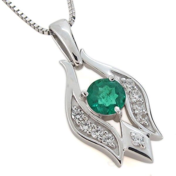 5月誕生石エメラルドを使用したプラチナ製の、エレガントなデザインネックレス・ペンダントです。