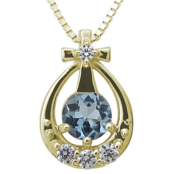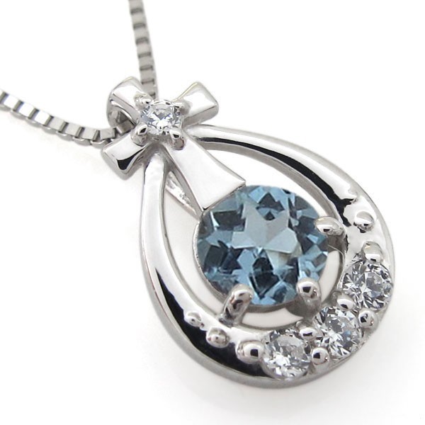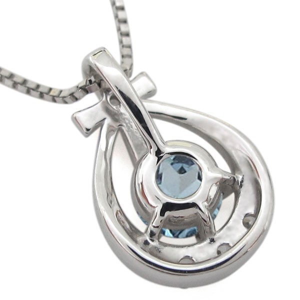 3月誕生石アクアマリンサンタマリアを一粒使用した、18金製のクロス(十字架)&雫(しずく)モチーフネックレスペンダントです。