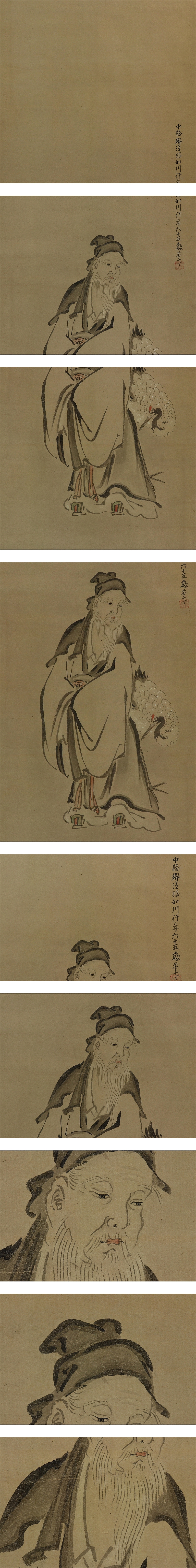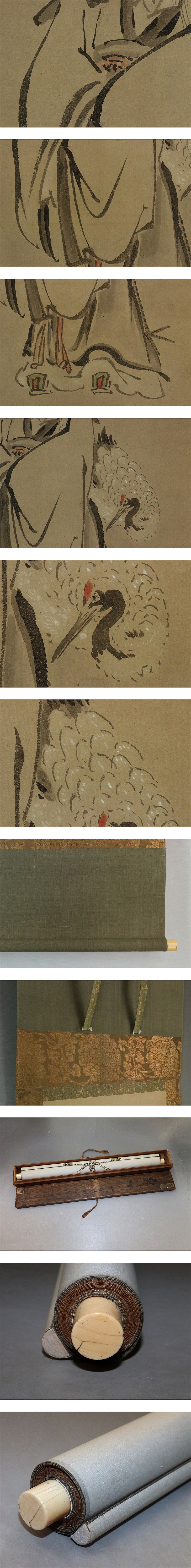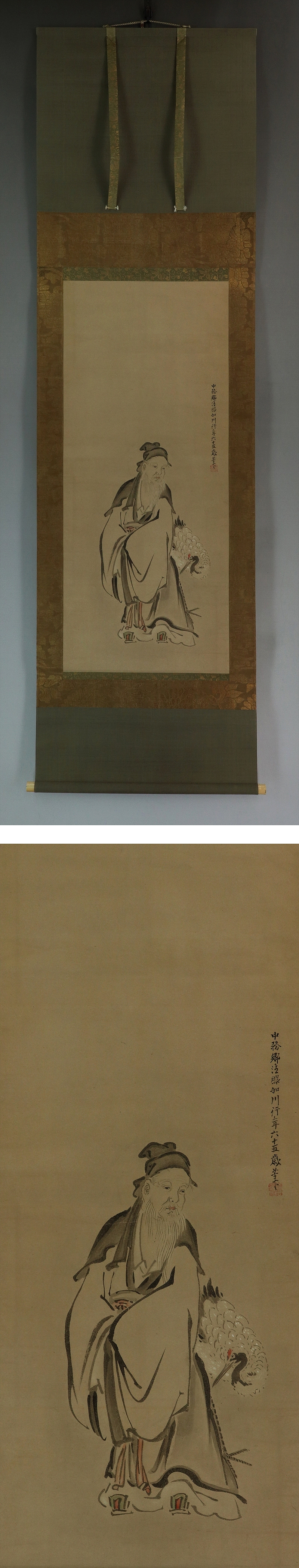 | №2206123【真作】狩野周信(如川)【寿老人】◆紙本◆合箱◆掛軸 | |