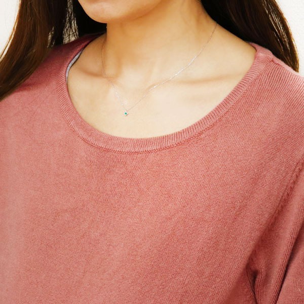 5月誕生石エメラルドを一粒使用した18金製の、シンプルレディースネックレス・ペンダントです。