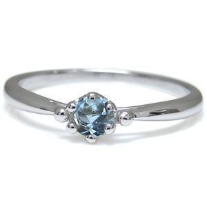 3月誕生石アクアマリンサンタマリアを一粒使用したシンプルで上品なデザインの18金製王冠モチーフリング(指輪)です。