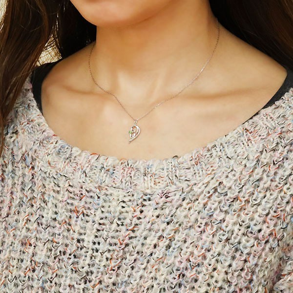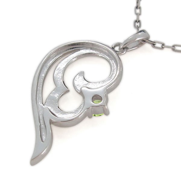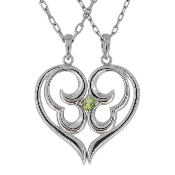 8月誕生石ペリドットを使用したシルバー製の、ハートモチーフペアネックレス(ペンダント)です。