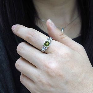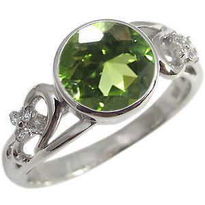 ■石名: 主石: ペリドット(約 8.0mm/天然石使用)脇石:ダイアモンド(合計6石で約 0.10ct/天然石使用)