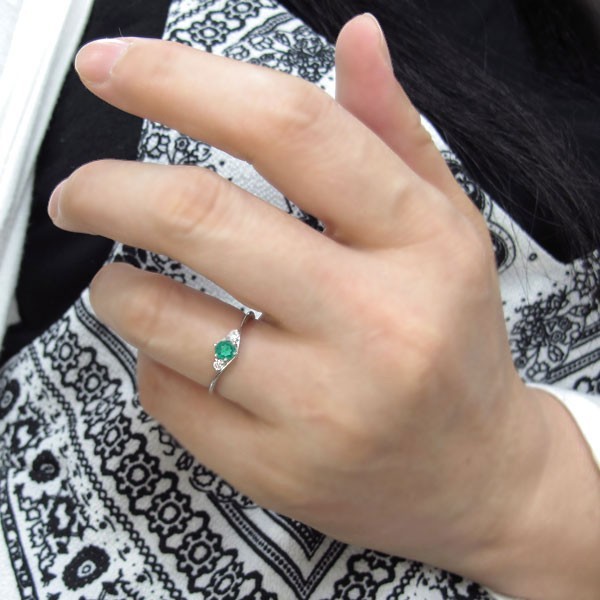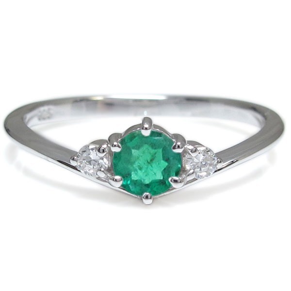 ■石名:主石 エメラルド(約 4.0mm/天然石使用)脇石 ダイヤモンド(2石合計で約 0.04ct/天然石使用)